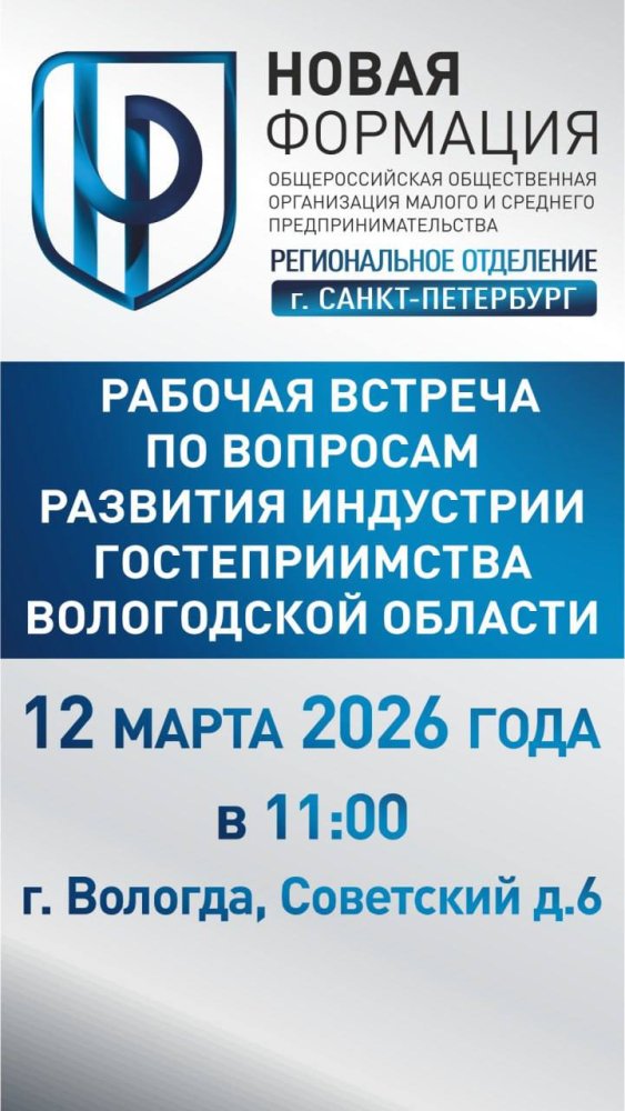 Встреча состоится 12 марта в городе Вологде. Планируем обсудить развитие индустрии гостеприимства, повышение качества гостиничных услуг и профессиональных компетенций руководителей средств размещения.