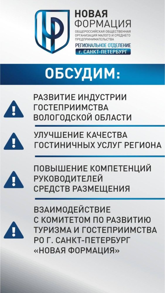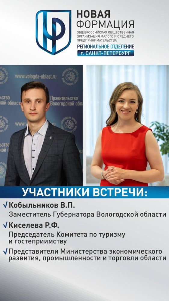 В марте у нас состоится рабочая встреча с представителями Правительства Вологодской области по развитию взаимодействия индустрии туризма и гостеприимства Вологодской области и Санкт-Петербурга, с участием: